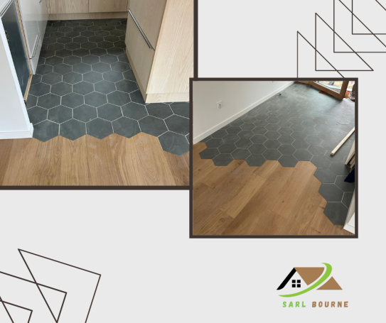 ➡ Jonction parquet / carrelage hexagonal apportant du caractère aux espaces